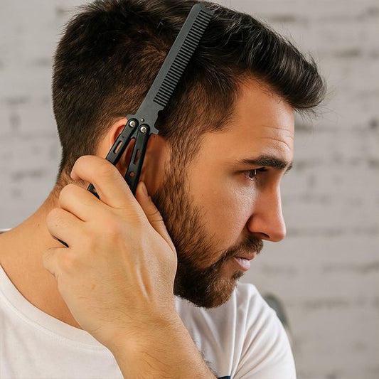 Nos peignes ProHairComb™ disponibles en noir, bleu, mauve et blanc sont fabriqués à partir de plastique robuste qui résiste à l'utilisation quotidienne. Leurs dents sont conçues pour glisser facilement à travers tous types de cheveux sans tirer ni casser.